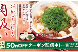 松屋は2025年10月21日10時より、関西名物のやさしい一杯「具だくさん肉吸い」を販売します。 「具だくさん肉吸い」は、大阪をはじめ関西地方で親しまれてきた名物料理。 たっぷりの牛肉に、豆腐を使用し、シャキッと食感の青…