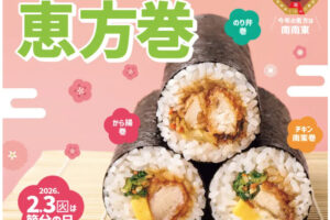 ほっともっとは2025年12月20日より店頭にて「2026年恵方巻」の予約を受け付けます。 ネットでは2026年1月9日より開始です。 こちらの販売期間は2月1日〜4日です。 販売する恵方巻は全3種類。 白身フライやちく…