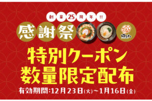 はなまるうどんは2025年12月18日〜30日の期間、対象のうどんがお得になるクーポンを配布します。 今回、創業25周年感謝祭の第7弾として、12月18日より公式アプリで「濃厚ごま担々うどん(3種)80円引きクーポン」を…