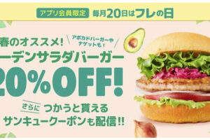 フレッシュネスバーガーは、毎月20日は「フレの日」としてお得なサービスを用意しています。 2026年3月20日の「フレの日」は、対象のハンバーガー・サイドメニューが20%OFFです。 対象商品 ・ガーデンサ…