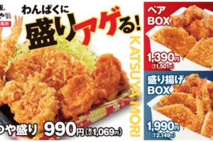 かつやは2026年3月27日より、ごちそうが楽しめるテイクアウト3種を発売します。 発売するのは「かつや盛り」「ペアBOX」「盛り揚げBOX」です。 「かつや盛り」は、80gロース×1枚、チキンカツ×1枚、海老フライ×2…