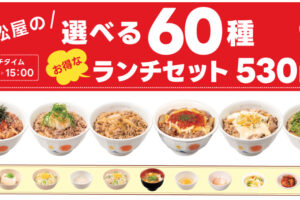 松屋は2026年4月7日11時より、ランチタイム限定で「松屋の選べる60種ランチセット」を販売します。 11:00〜15:00のランチタイム限定で、圧倒的なバリエーションとお得な価格を実現します。 その日の気分や好みに合…