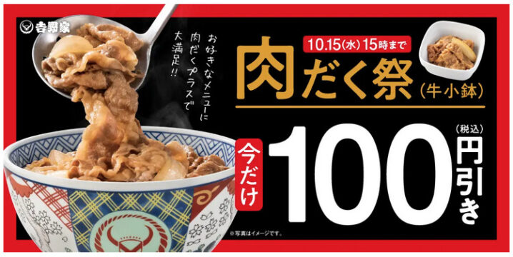 吉野家は2025年10月2日11時〜15日15時の期間、『肉だく祭』を開催します。
