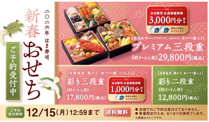 はま寿司は2025年10月7日より「2026年新春おせち」の予約を受け付けています。