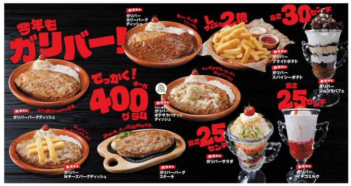 びっくりドンキーは2025年10月8日より、ボリューム満点のガリバーメニューを販売します。