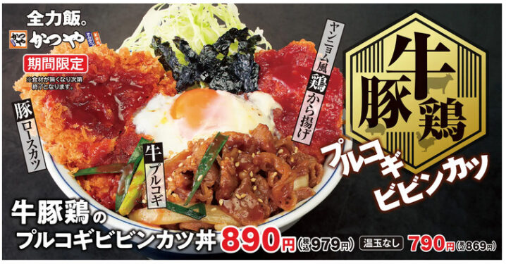 かつやは2025年10月10日より「牛豚鶏のプルコギビビンカツ丼」を期間限定で販売します。