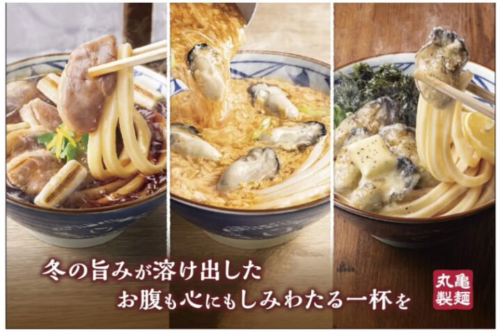 丸亀製麺は2025年11月25日~2026年3月上旬の期間、『鴨ねぎうどん』と『牡蠣たまあんかけうどん』を販売します。