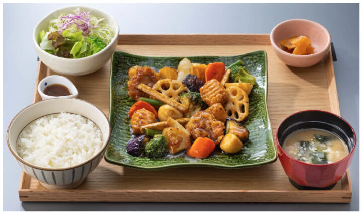 大戸屋は2025年12月1日より「季節の野菜と豚と鶏つくねの黒酢あん」が冬野菜になって登場しています。