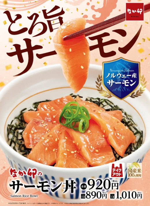 なか卯は2025年12月10日11時より「サーモン丼」を販売します。