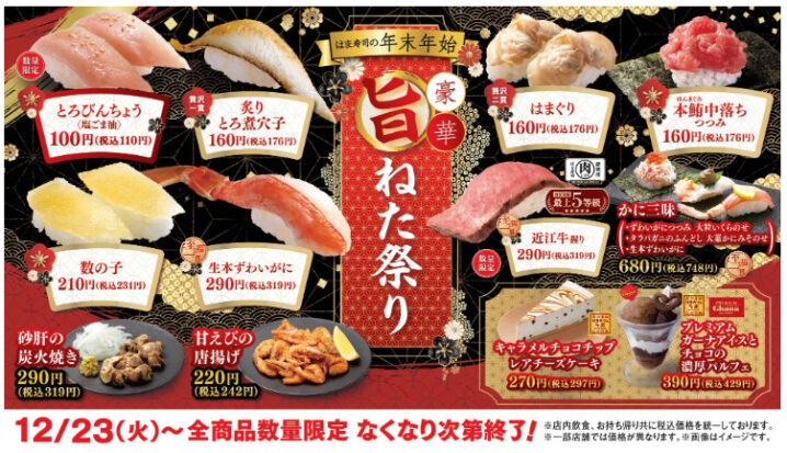 はま寿司は2025年12月23日より「はま寿司の年末年始豪華旨ねた祭り」を開催します。