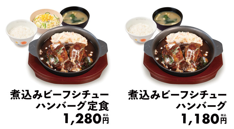 松屋は2025年12月23日10時より「煮込みビーフシチューハンバーグ」を販売します。