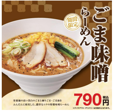 幸楽苑は2025年12月24日から「ごま味噌らーめん」を期間限定で販売します。