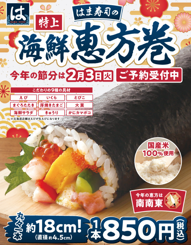 はま寿司は2026年1月5日より、「2026年はま寿司の恵方巻」の予約を受け付けています。