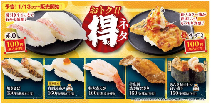 魚べいと元気寿司は2026年1月13日より「得ネタフェア」を開催します。