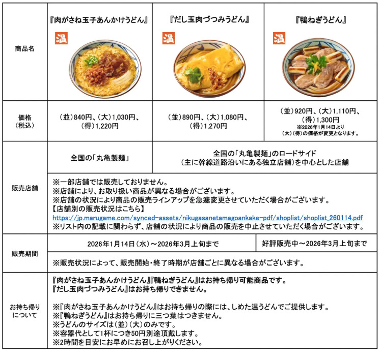 大戸屋は2026年1月14日〜3月上旬の期間、『肉がさね玉子あんかけうどん』と『だし玉肉づつみうどん』を販売します。