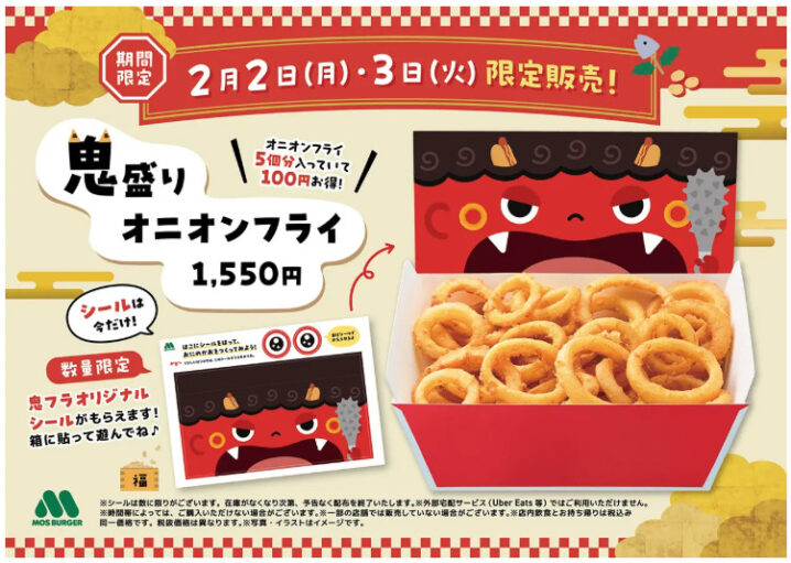 モスバーガーは2026年2月2日〜3日の2日間、節分にあわせて「鬼盛りオニオンフライ」を発売します。