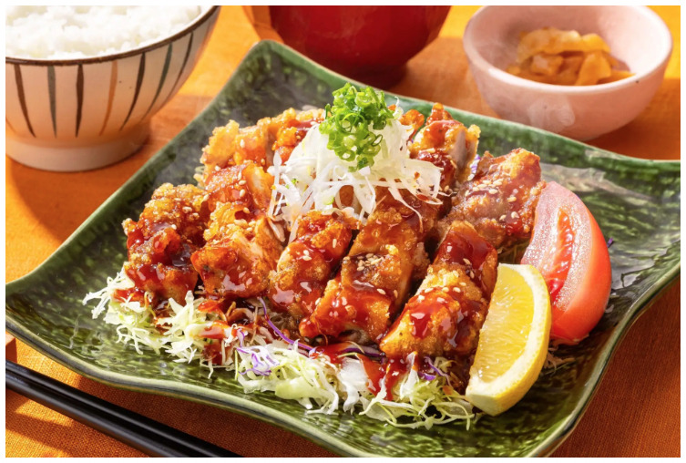 もも肉は特製の竜田だれに漬け込み、ジューシーで食べごたえのある仕上がりに。