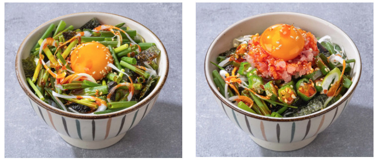 さらに、+340円でマグロとおくらをプラスした「ピリ辛ユッケご飯」にグレードアップできます。