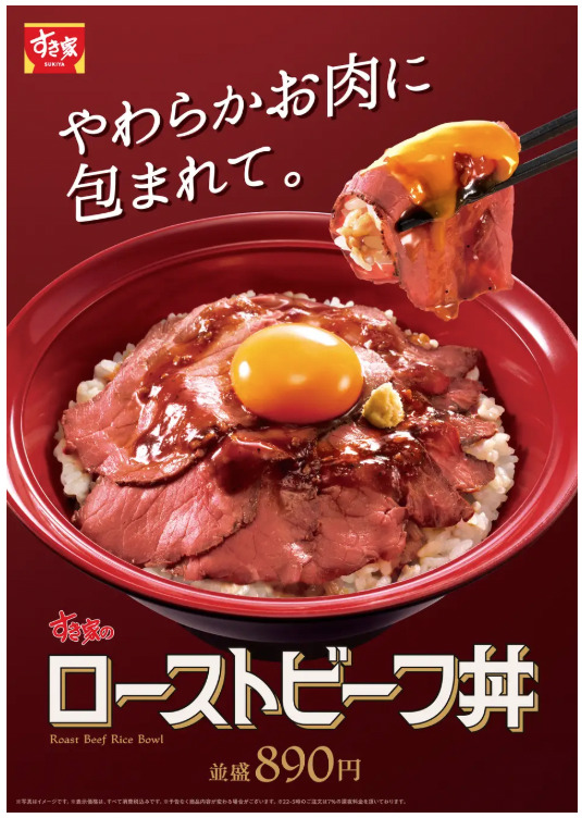 すき家は2026年2月17日9時より「ローストビーフ丼」を再販売します。