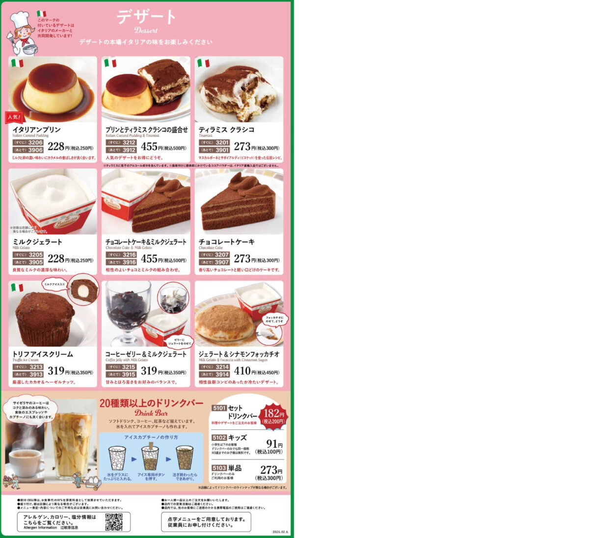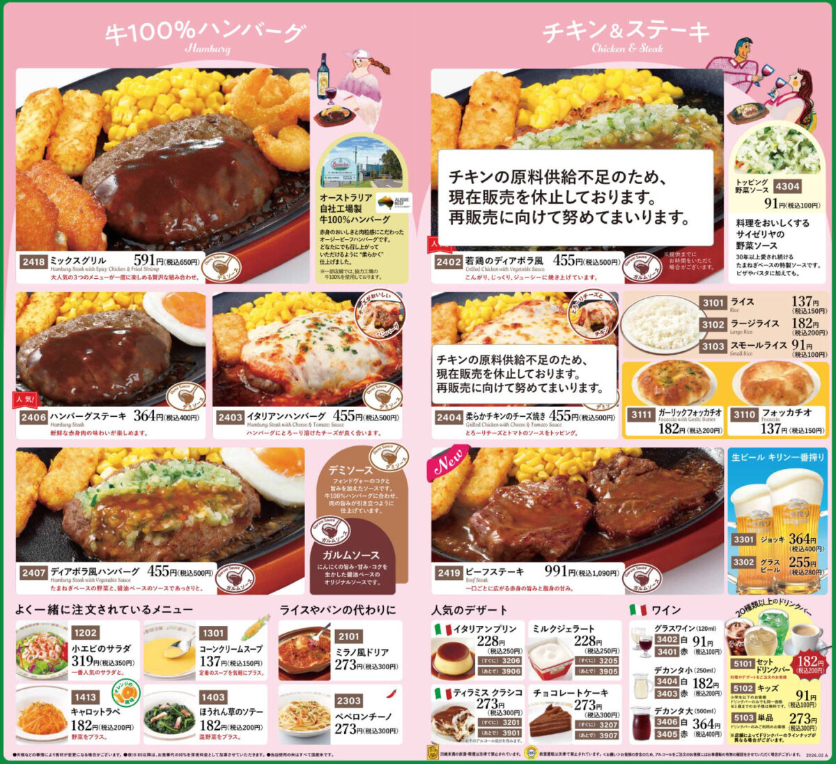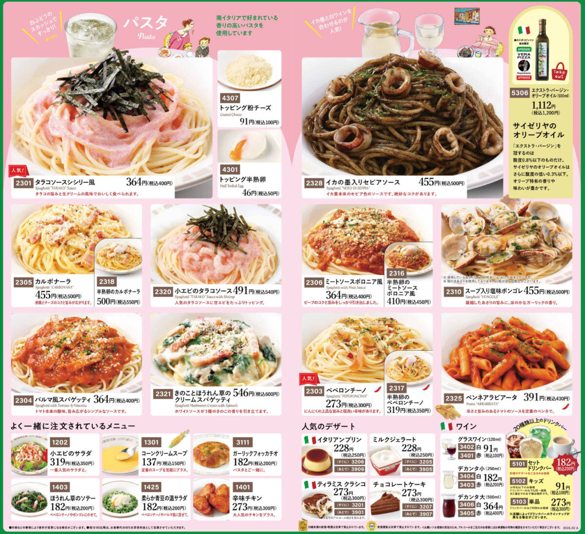 サイゼリヤは2026年2月18日にグランドメニューをリニューアルしました。