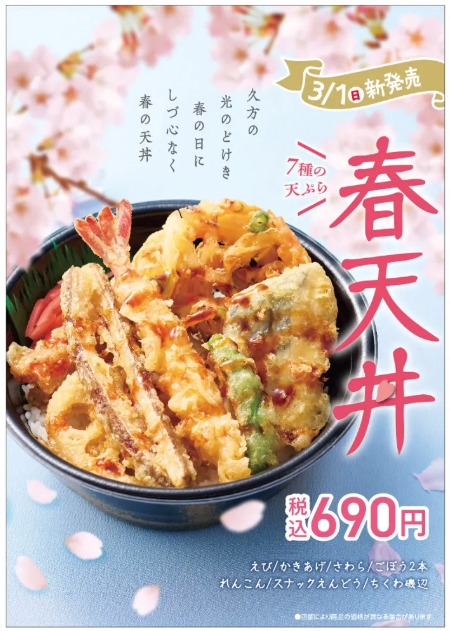ほっかほっか亭は2026年3月1日より、『春天丼』と『鶏の黒酢あんかけランチ』を発売しています。