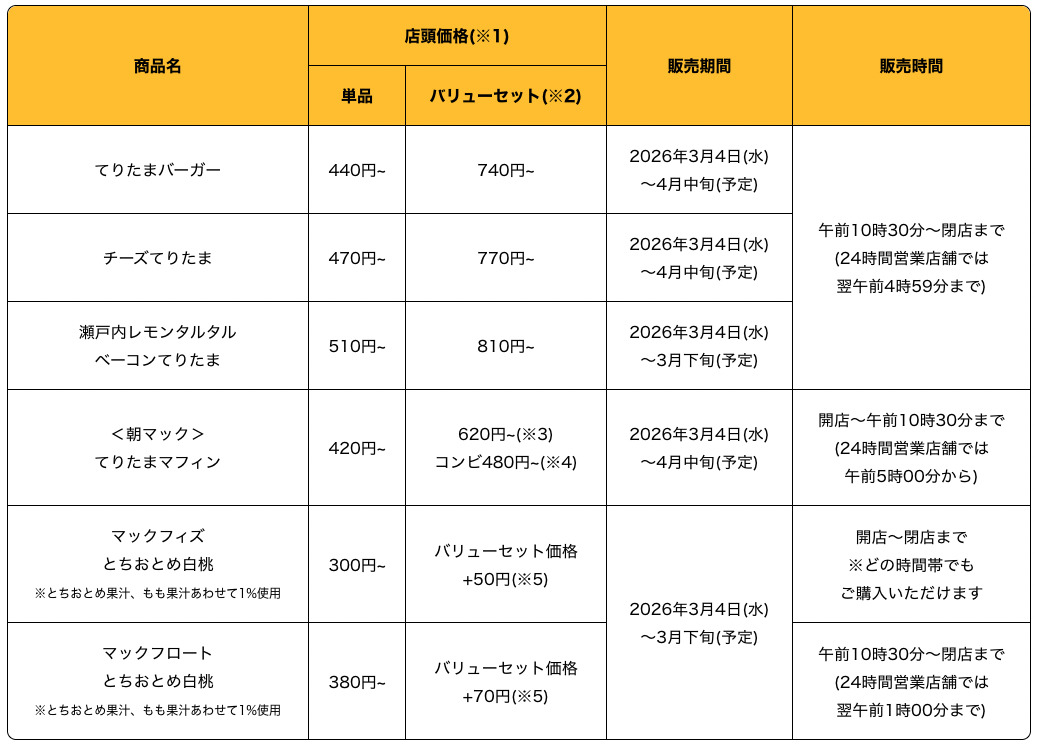 マクドナルドは2026年3月4日より、春の風物詩「てりたまファミリー」を発売します。