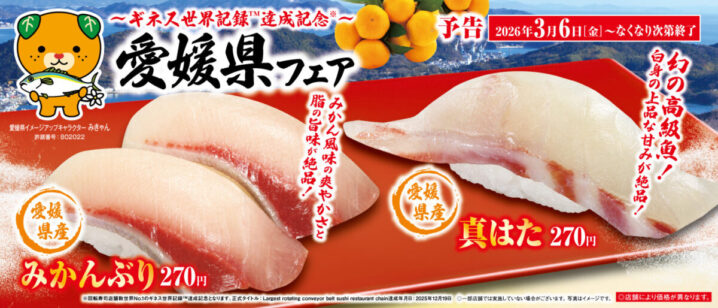 くら寿司は2026年3月6日より「愛媛県フェア」を期間限定で開催します。