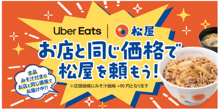 松屋は2026年3月15日より順次、Uber Eatsでの価格を店頭と同じに改定します。