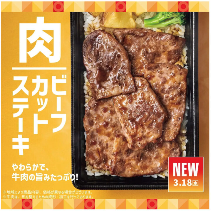他にも、お肉好きにはたまらないボリューム満点な『新・Wビーフカットステーキ重(肉2倍)』や、エビフライやから揚、メンチカツなどのバラエティ豊かなおかずを楽しめる『新・スペシャル洋風バラエティ弁当』、肉とごはんを別々で楽しめるセパレートタイプの『新・ビーフカットステーキ弁当』も同時に販売します。
