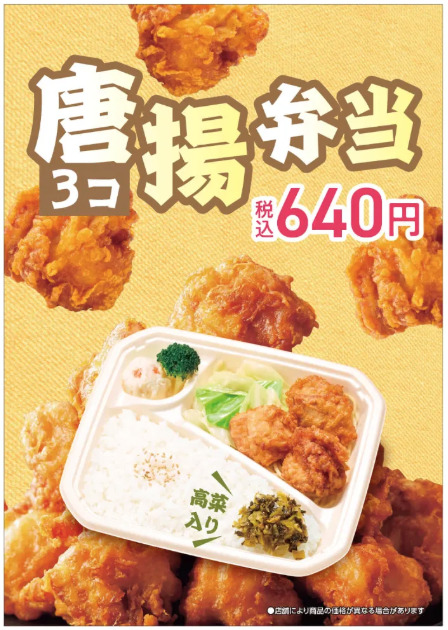 人気の唐揚弁当に、食べやすい3個入りを追加。