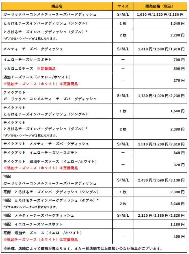 いつものチーズバーグディッシュに濃厚なイエローチーズソースがかかった「メルティーチーズバーグディッシュ」3種を販売します。