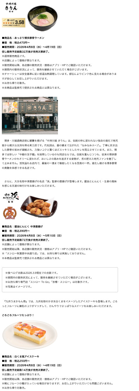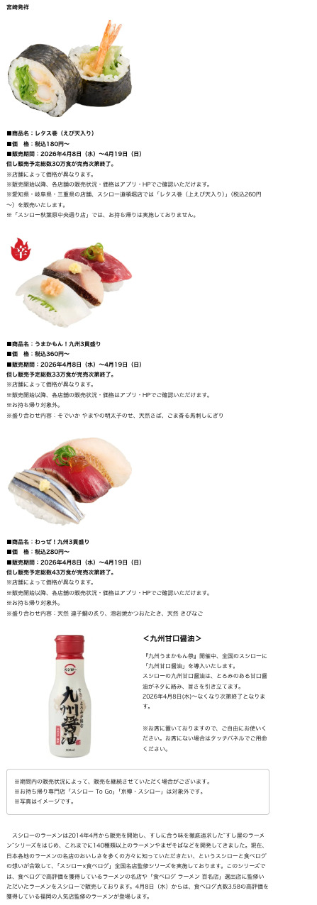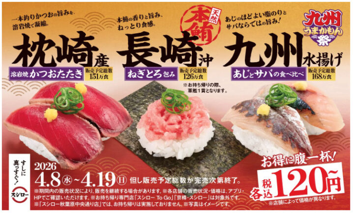 スシローは2026年4月8日より『九州うまかもん祭』を開催します。