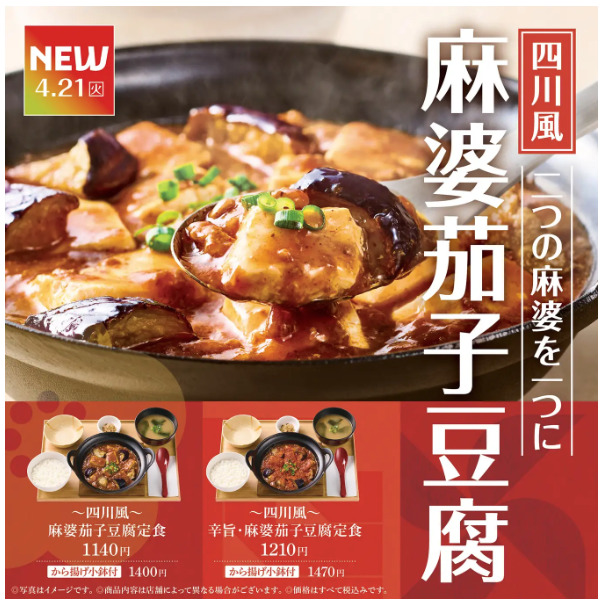 やよい軒は2026年4月21日より『~四川風~麻婆茄子豆腐定食』を販売します。