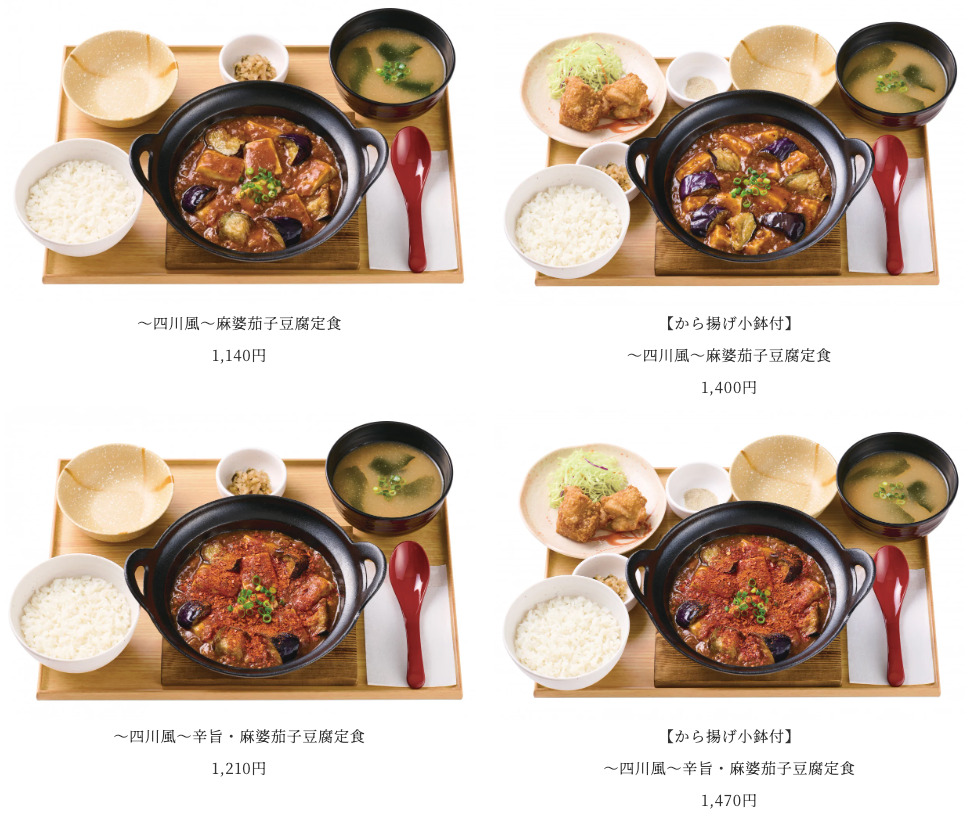 さらに、より刺激的な辛さを楽しみたい方向けに『~四川風~辛旨・麻婆茄子豆腐定食』も用意します。
