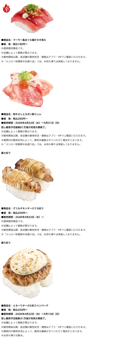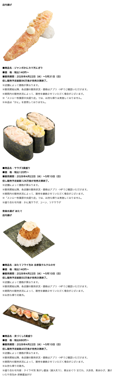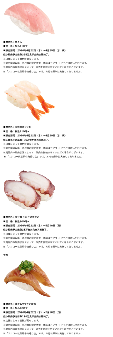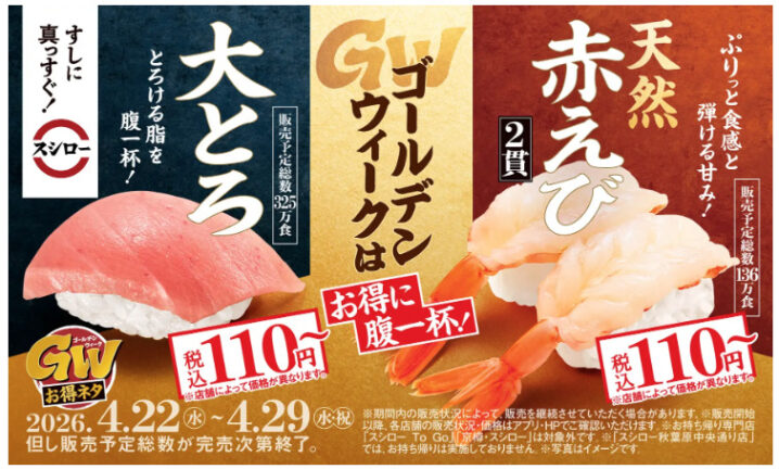 スシローは2026年4月22日〜29日の期間、『GWお得ネタ』を開催します。