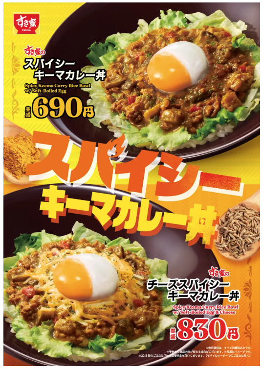すき家は2026年4月28日9時より「スパイシーキーマカレー丼」を販売します。