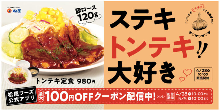 販売を記念して、2026年4月28日10時~5月5日10時の期間、松屋フーズ公式アプリにて100円OFFクーポンを配信します。