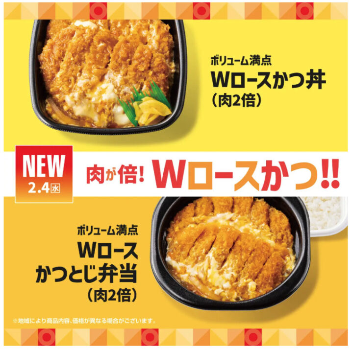 ほっともっと、2026年2月4日より『Wロースかつ丼(肉2倍)』『Wロースかつとじ弁当(肉2倍)』『白身フライ&チキンBOX』を発売