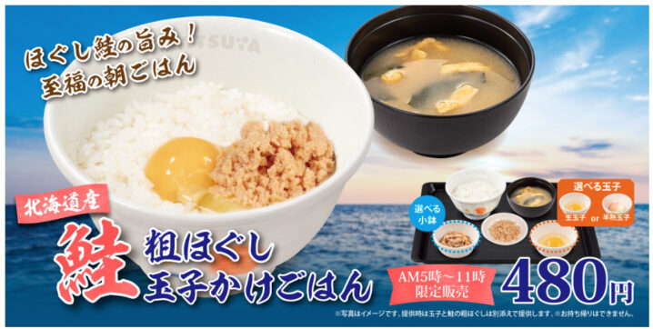 松屋、2026年1月14日より朝時間を楽しむ「北海道産鮭の粗ほぐし玉子かけごはん」を販売