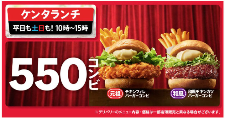 ケンタッキー、2026年1月5日より“550コンビ” 「チキンフィレバーガー」と「和風チキンカツバーガー」が登場