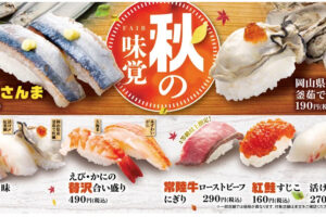 魚べいと元気寿司は2025年8月26日より「秋の味覚フェア」を開催しています。 フェア商品 ・北海道産さんま/2貫230円(税込) ・岡山県産釜茹で牡蠣/1貫190円(税込) ・国産秋三昧/3貫440円(税…