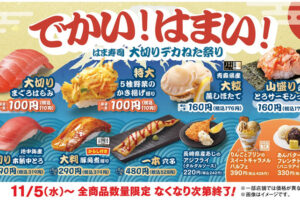 はま寿司は2025年11月5日より「はま寿司 大切りデカねた祭り」を開催します。 フェアでは、マグロ1尾から数%しか取れない“はらみ”を大切りで提供する「大切りまぐろはらみ」、タマネギやニンジン、インゲン、ジャガイモ、サ…