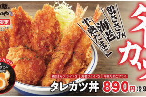 かつやは2025年11月7日より「タレカツ」を期間限定で販売します。 今年のタレカツは、この生パン粉で仕上げた定番の「鶏ささみフライ」3枚と「海老フライ」2本に加え、一口頬張れば濃厚な黄身の味わいが口いっぱいに広がる「半…
