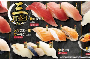 魚べいと元気寿司は2025年11月7日より「三貫盛りフェア」を開催しています。 フェアでは、魚べい自慢の「大切りまぐろ」、脂のバランスがほどよい「本鮪中とろ」軽やかな口当たりの「上びんちょう」を一貫ずつ乗せ、まぐろの食べ…