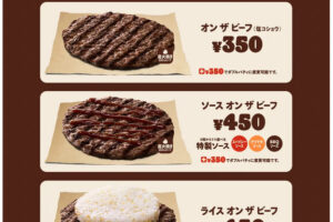 バーガーキングは2025年9月26日〜10月9日の期間、ビーフパティの旨さをそのまま味わえる『オン ザ ビーフ』3種を発売します。 『オン ザ ビーフ』は、直火焼きの100%ビーフパティをそのまま味わえる商品。 ビーフパ…