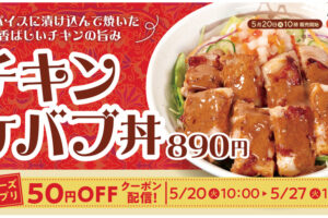 松屋は2025年5月20日10時より「チキンケバブ丼」を販売します。 「チキンケバブ丼」は、柔らかくジューシーなチキンに、本格スパイシーな松屋特製ソースを合わせたメニュー。 風味豊かなスパイスに漬け込んだごろっとチキンは…