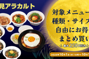 松屋は2024年10月1日〜14日の期間、アプリ限定のお得なテイクアウトまとめ買い「月見アラカルト」を販売しています。 「月見アラカルト」は、対象のメニュー7種より、希望の種類・サイズで自由に組み合わせて、通常価格より最…