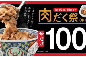 吉野家は2025年10月2日11時〜15日15時の期間、『肉だく祭』を開催します。 キャンペーンでは、「肉だく(牛小鉢)」を100円引きし、店内122円テイクアウト118円で提供します。 牛丼はもちろん、丼や定食にもプラ…