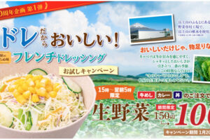 松屋は2026年1月5日〜20日の各日15時〜翌5時の時間、松屋60周年記念企画 第1弾として「生野菜」を50円引きの100円で販売します。 【対象メニュー】 牛めし ネギたっぷり旨辛ネギたま牛めし 鬼おろしポン酢牛めし…