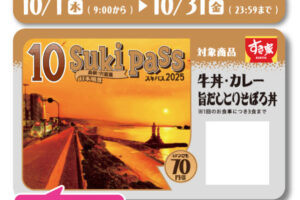 すき家は2025年10月1日9時より、牛丼・カレー・旨だしとりそぼろ丼などが70円引きになるお得なカード「Sukipass」を販売します。 利用対象商品は、店内・お持ち帰り両方の牛丼、カレー、旨だしとりそぼろ丼、牛丼ライ…